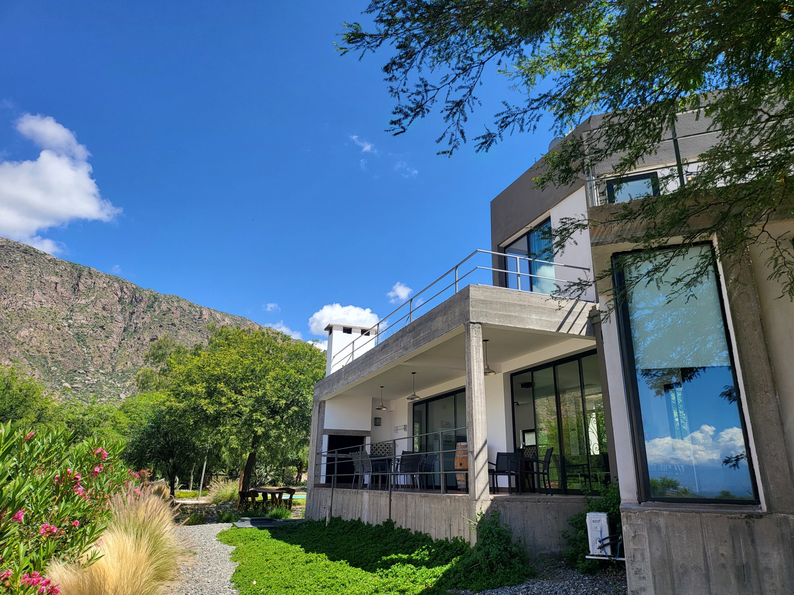 Hermosa casa de 45m², en Club de Campo Vertientes, con 1 dormitorio, para un máximo de 5 personas. Estacionamiento, galería con asador y vistas panorámicas. Sector de juegos para niños y amplia piscina compartido con Casa Malbec I y Torrontés.