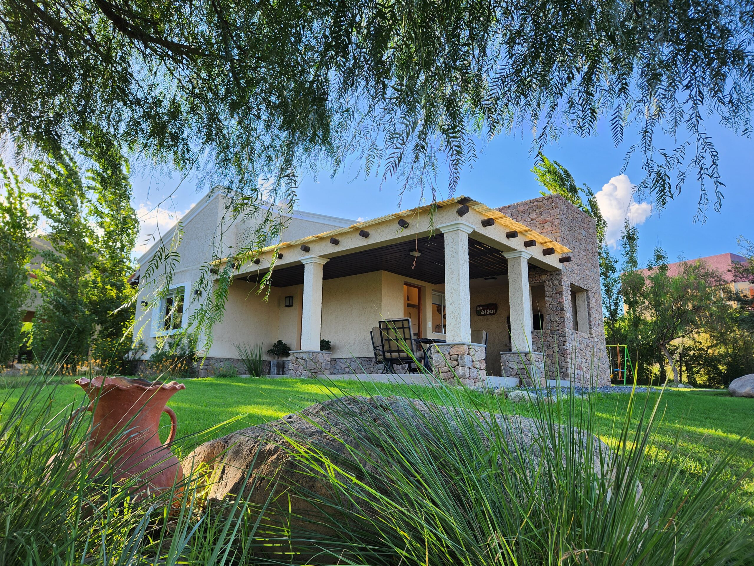 Hermosa casa de 65m² en Club de Campo Vertientes, con 1 dormitorio, totalmente equipada para un máximo de 5 personas. Galería con asador y cochera techada. Sector de juegos para niños y amplia piscina compartido con Casas Malbec.